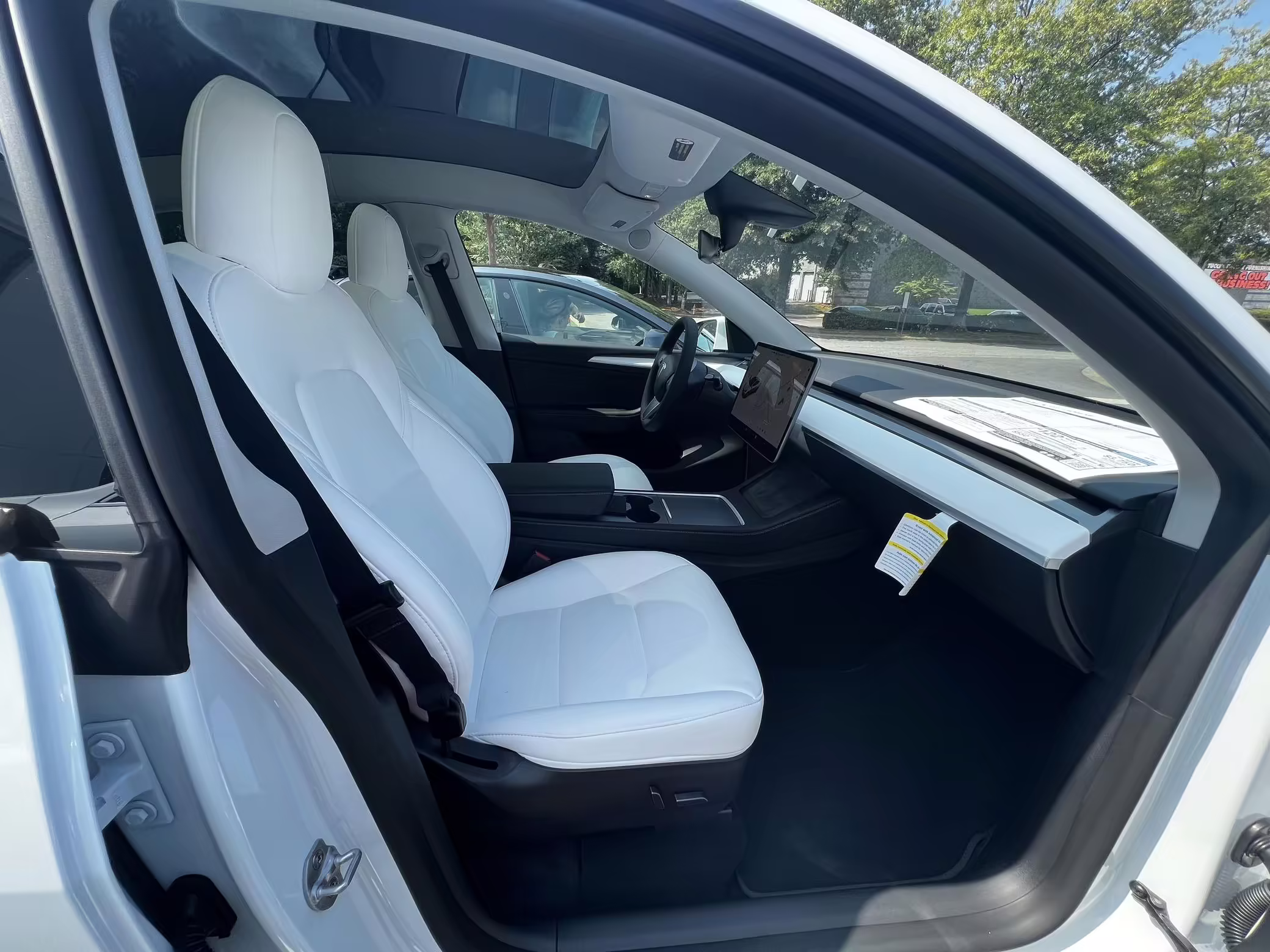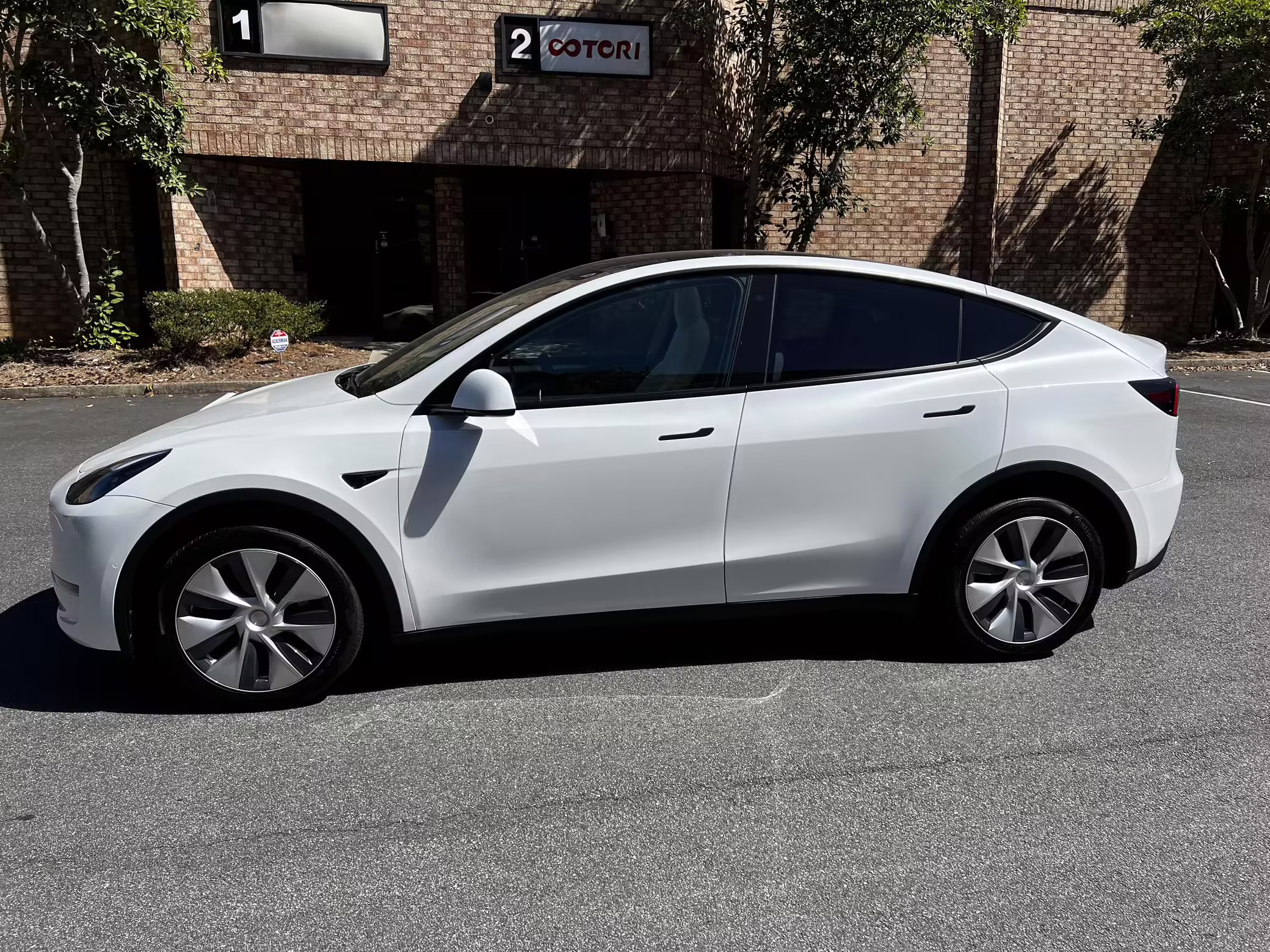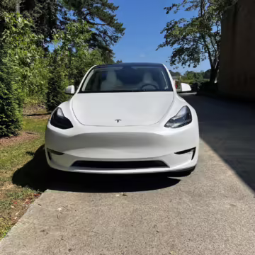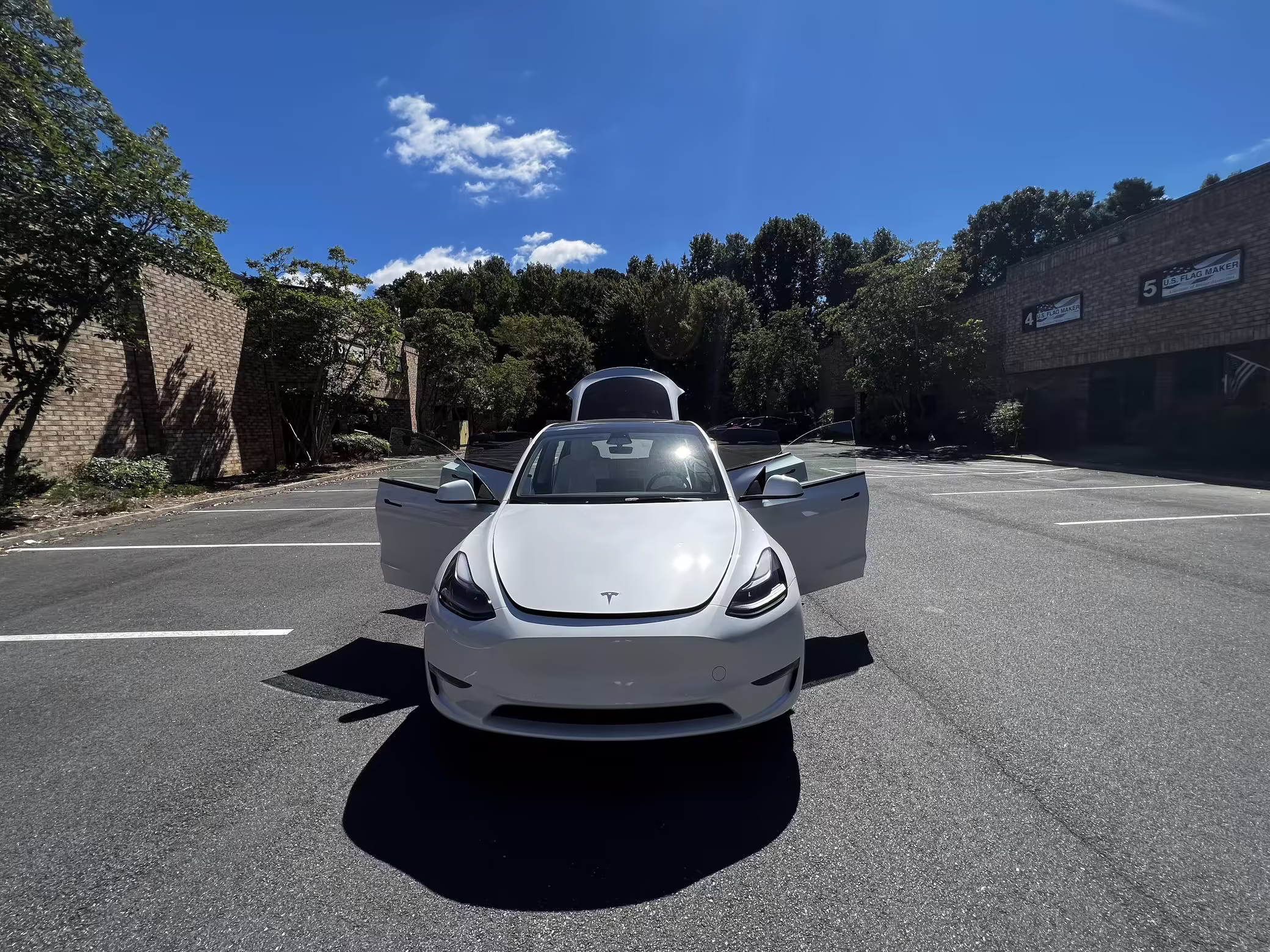 2022 Tesla Model Y Long Range AWD, finished in Pearl White with a white and black interior.