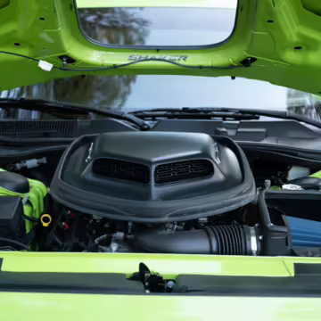 The Dodge Challenger R/T is a cool modern American muscle car, touting the classic formula of a head-turning retro design, rear-wheel drive, and a big Hemi V8. This particular example features some great factory equipment, including the Shaker Package, an active exhaust system, and performance suspension – along with no major modifications.