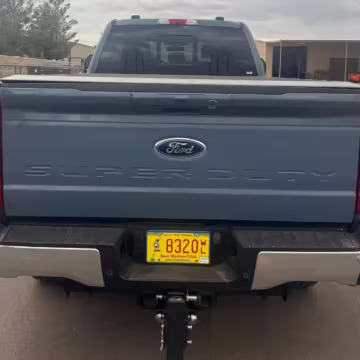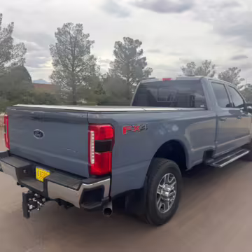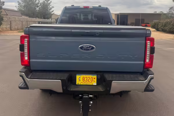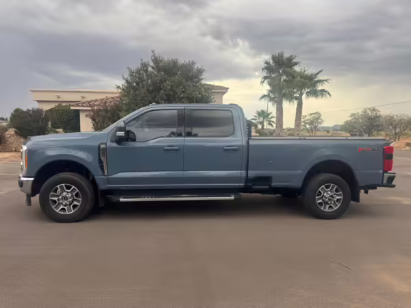 2023 Ford F-350 Super Duty Lariat 4×4, finished in Azure Gray with a Black Onyx interior.