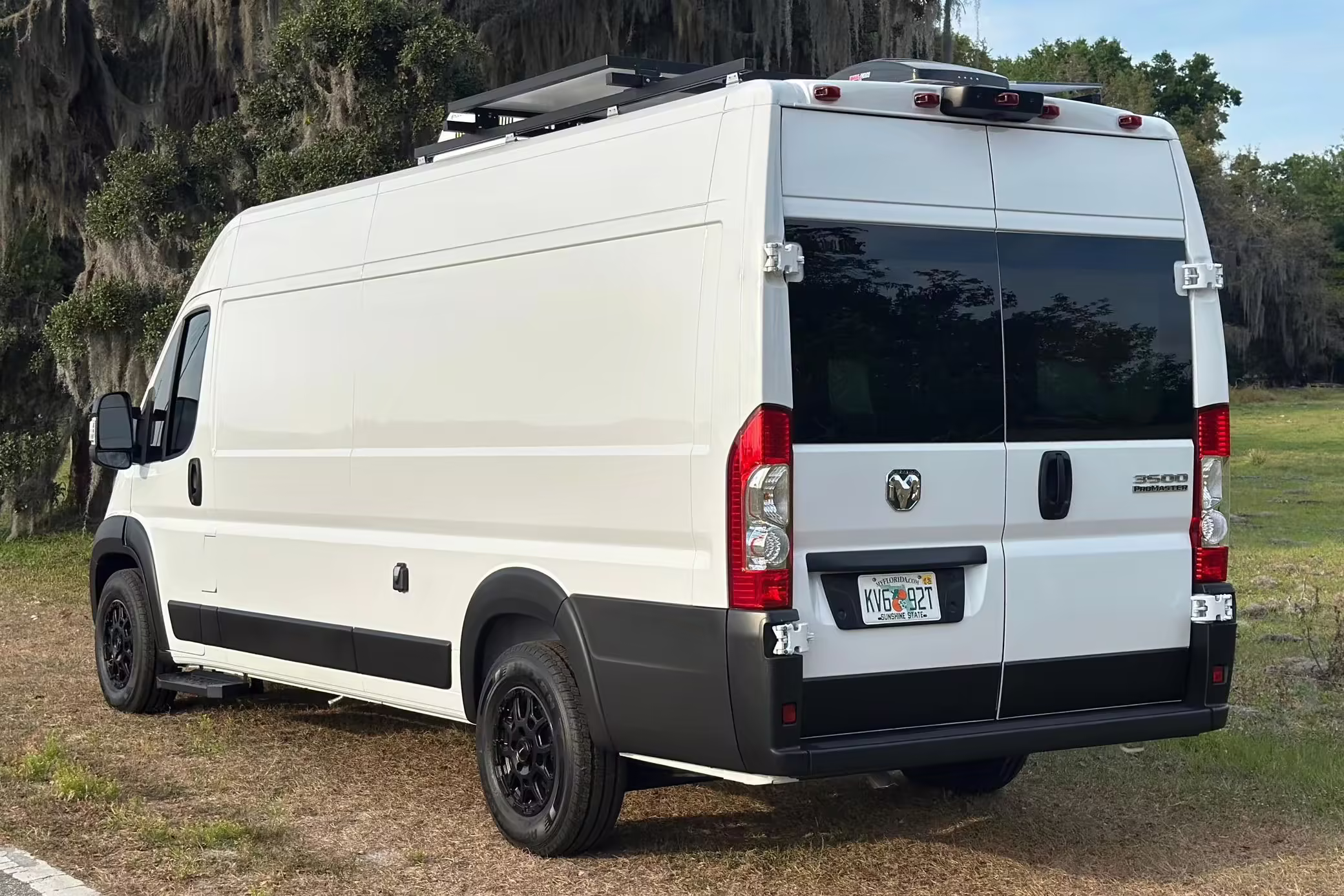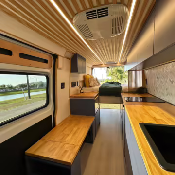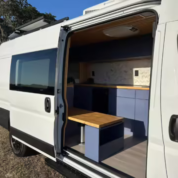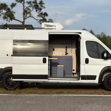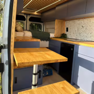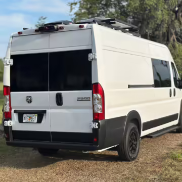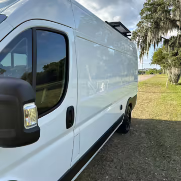 • This Promaster was reportedly converted into a camper by Florida-based Imperia Premium Vans, and a list of notable modifications reported by the seller includes hand-made cabinets, wood countertops, an extendable table, an RCA refrigerator, a sink, a 25-gallon fresh water tank, and a 400-watt EcoFlow solar panel.
