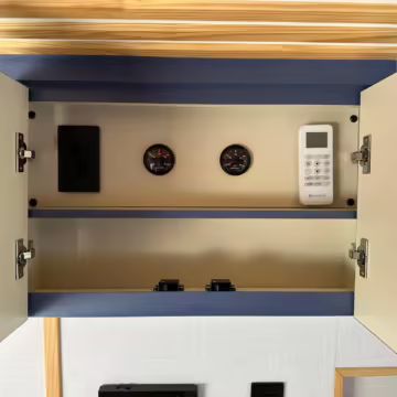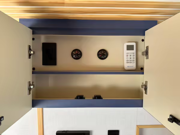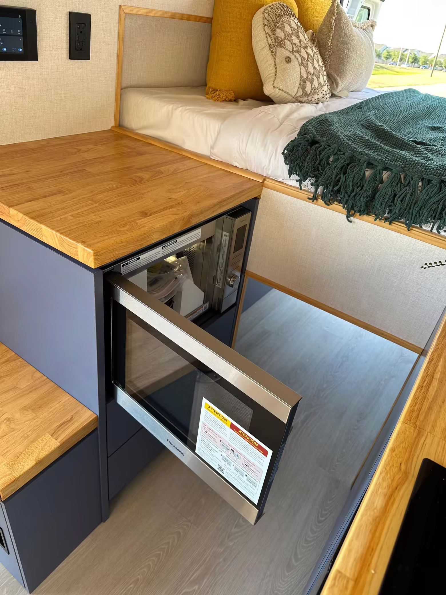 • Household-type power outlets (including fast-charging outlet next to the bed)