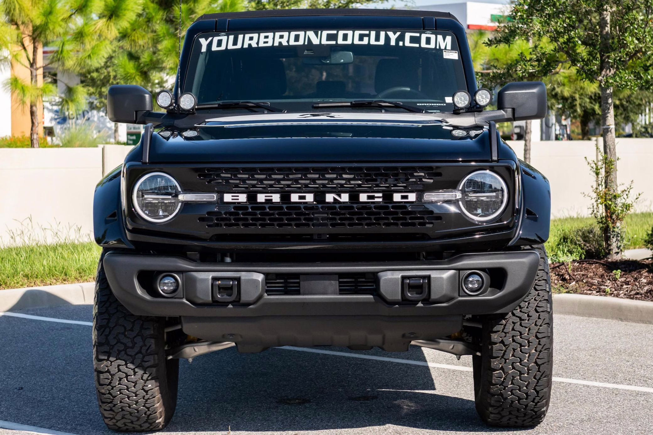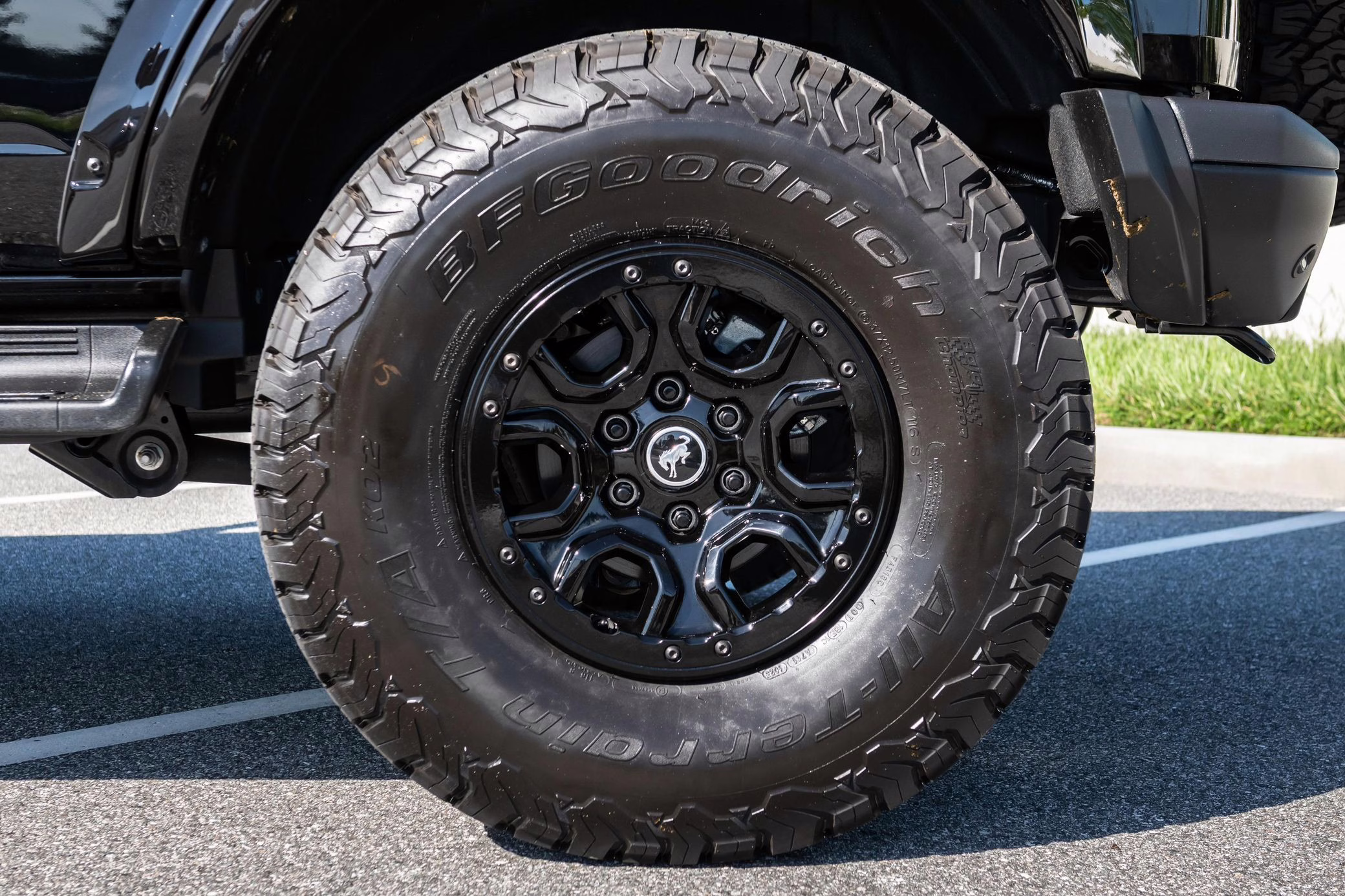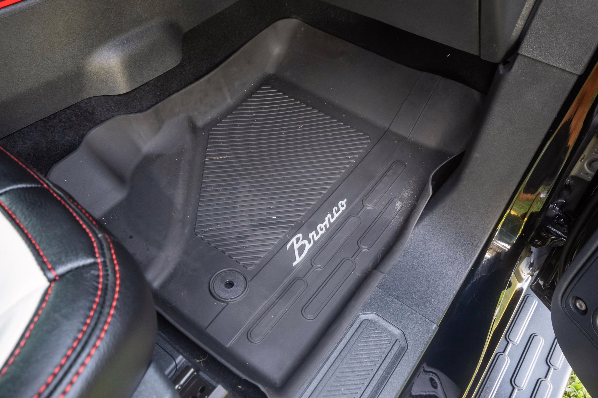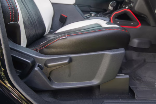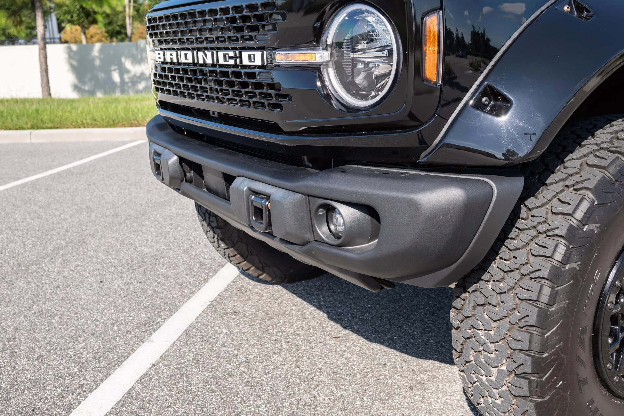 • Heritage Limited R Package (Ford Wide Body Package, Custom Paint Package, Black Out Trim Package, upgraded Ford convertible top, high output exterior pod lights, Ford Performance Rigid Quad Mounting Package, 17-inch multi-spoke black alloy wheels, 4-inch lift kit, R Graphics Package, Katzkin leather upholstery, heated front seats, red stiching, black-out grille, illuminated grille, Bronco emblems and hood graphics, Heritage Limited R logos, Sasquatch logos)