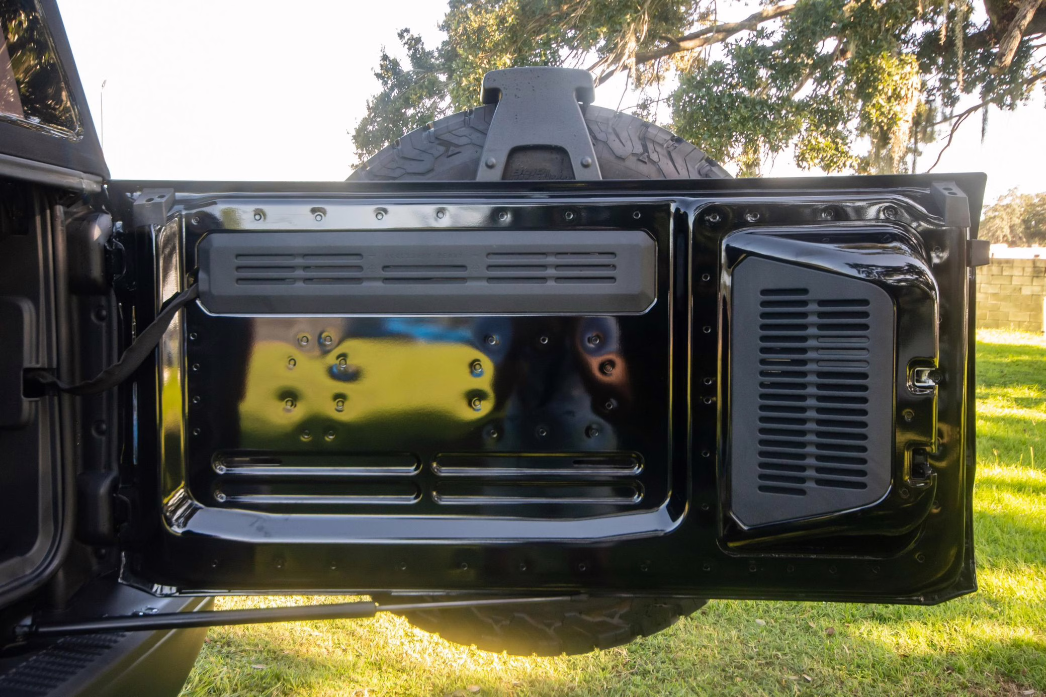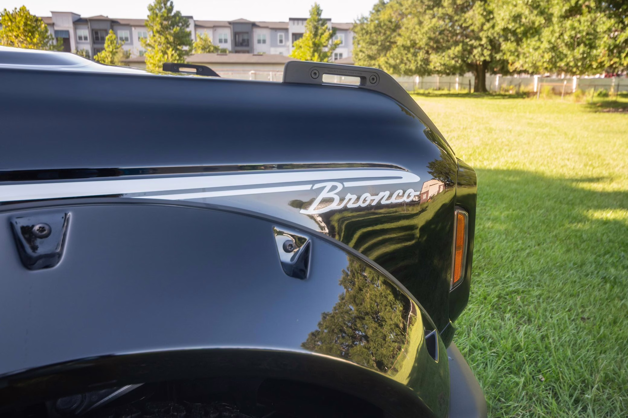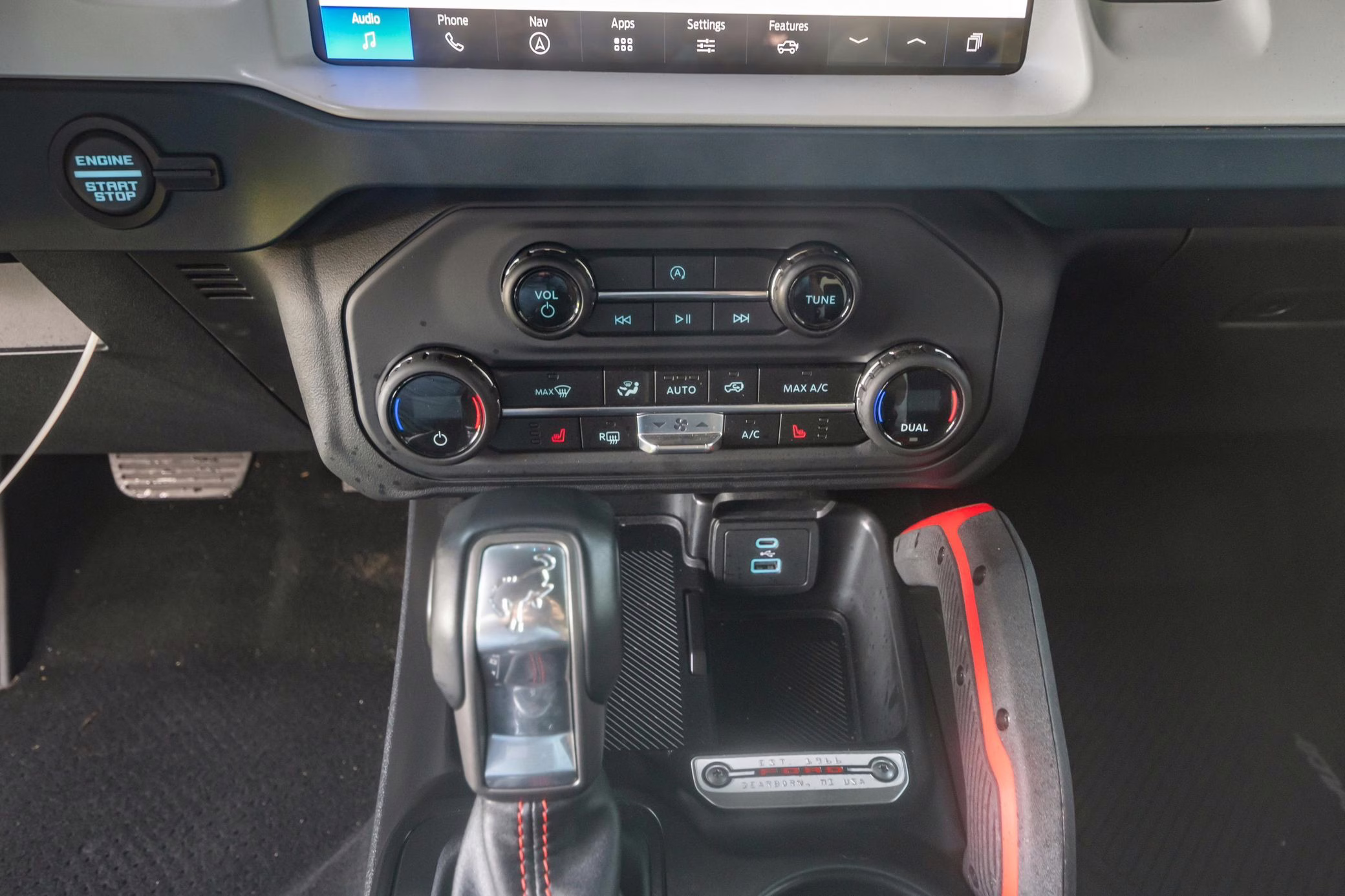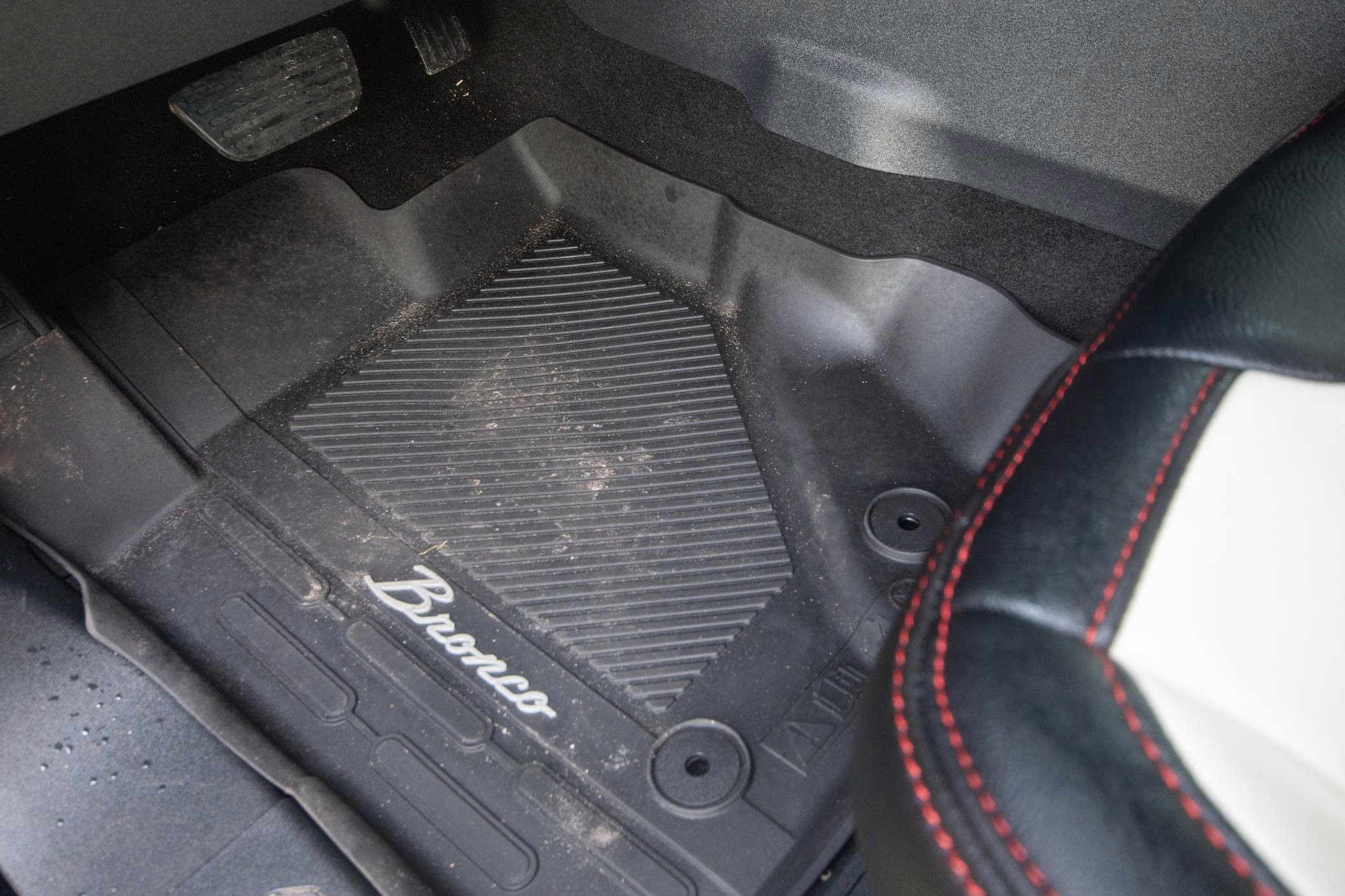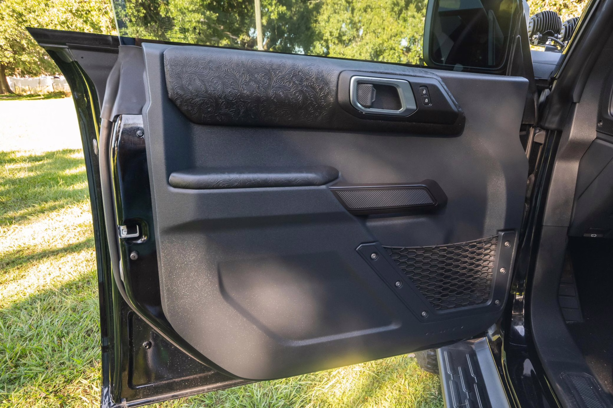• Heritage Limited R Package (Ford Wide Body Package, Custom Paint Package, Black Out Trim Package, upgraded Ford convertible top, high output exterior pod lights, Ford Performance Rigid Quad Mounting Package, 17-inch multi-spoke black alloy wheels, 4-inch lift kit, R Graphics Package, Katzkin leather upholstery, heated front seats, red stiching, black-out grille, illuminated grille, Bronco emblems and hood graphics, Heritage Limited R logos, Sasquatch logos)