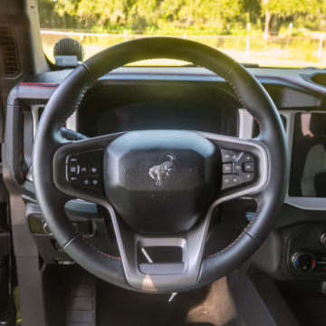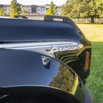 • The sixth-generation Bronco was introduced for the 2021 model year, ending a 25-year hiatus and nearly a decade of speculation about its return. Retro styling, body-on-frame construction, and a suite of off-road equipment help to ensure this truck lives up to the Bronco name. While the convertible soft top adds to this Bronco’s back-to-basics packaging, amenities like wireless Apple CarPlay and hill descent control bring a modern touch to the experience.