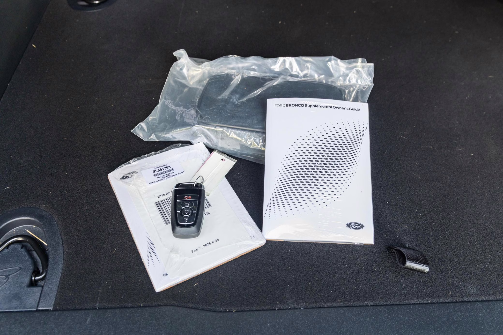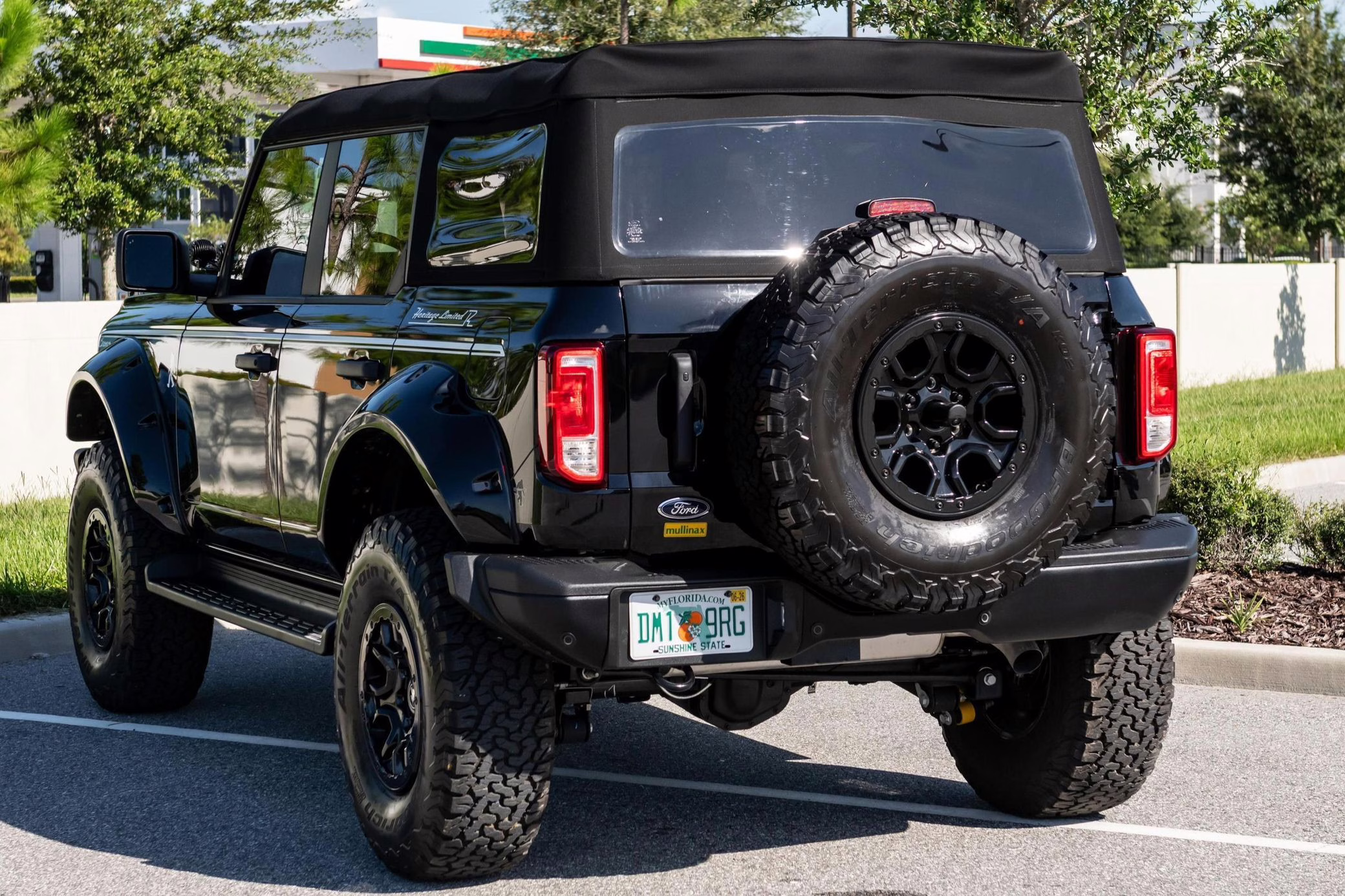 2025 Ford Bronco Heritage Edition, finished in Shadow Black with a black soft top and a black and white interior.