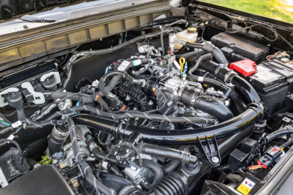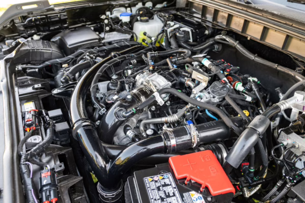 • Power comes from a 2.7-liter twin-turbocharged EcoBoost V6, which produces up to 330 horsepower and 415 lb-ft of torque when using premium fuel, according to Ford. Output is sent to the rear or all four wheels via a 10-speed automatic transmission and a 2-speed transfer case.